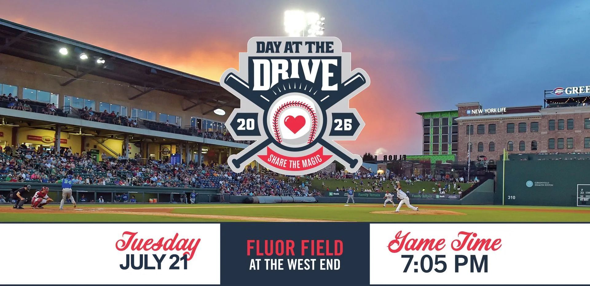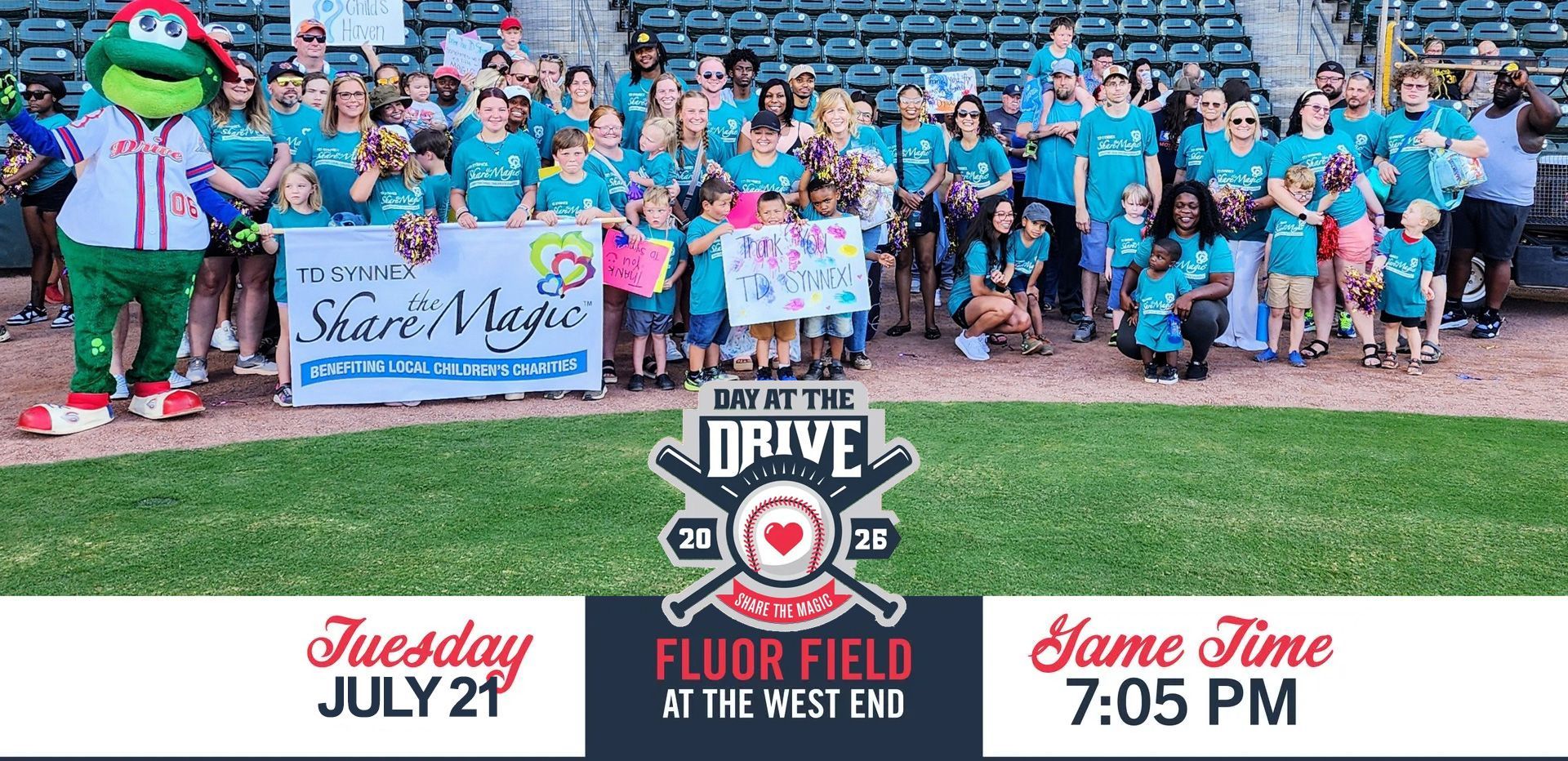 The Greenville Drive and TD SYNNEX Share the Magic are teaming up once again in 2026 to support children in need! Join us for a fun-filled evening at the ballpark with your family and friends, and help make a difference in the lives of those in our community.